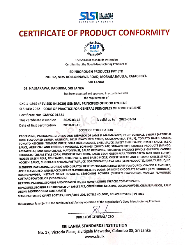 We believe in offering high quality foodstuff through superior technology and best practices in the manufacturing processes.