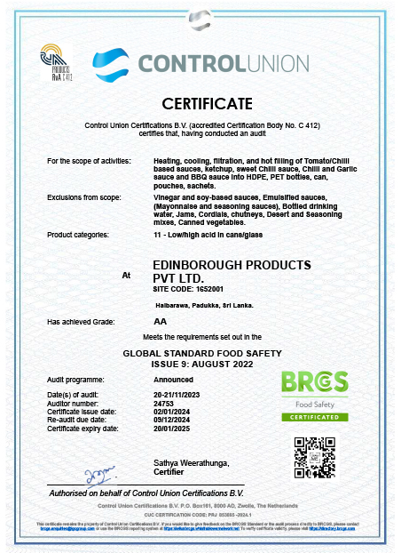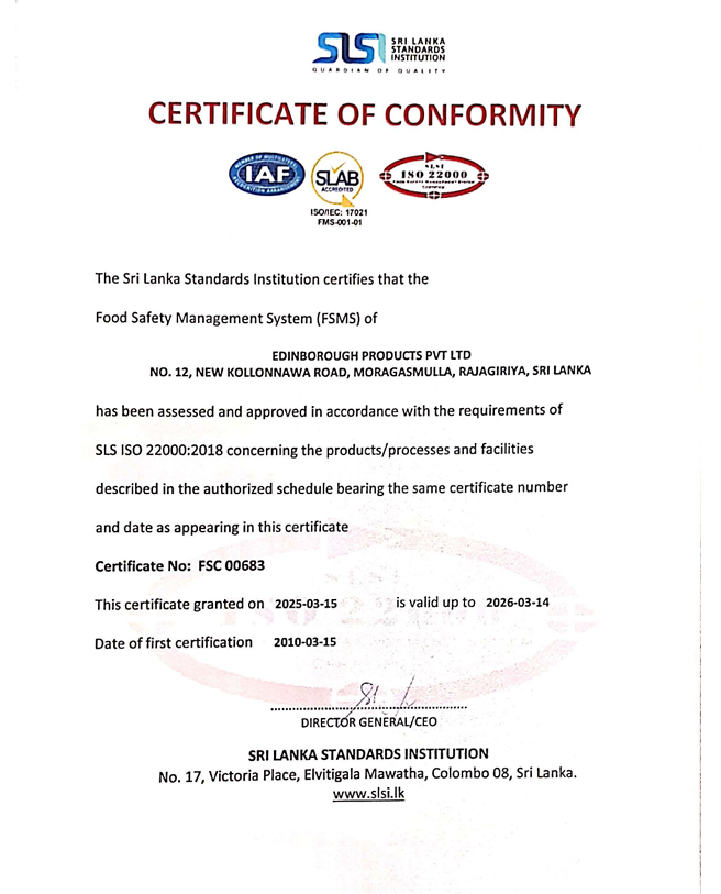 We believe in offering high quality foodstuff through superior technology and best practices in the manufacturing processes.